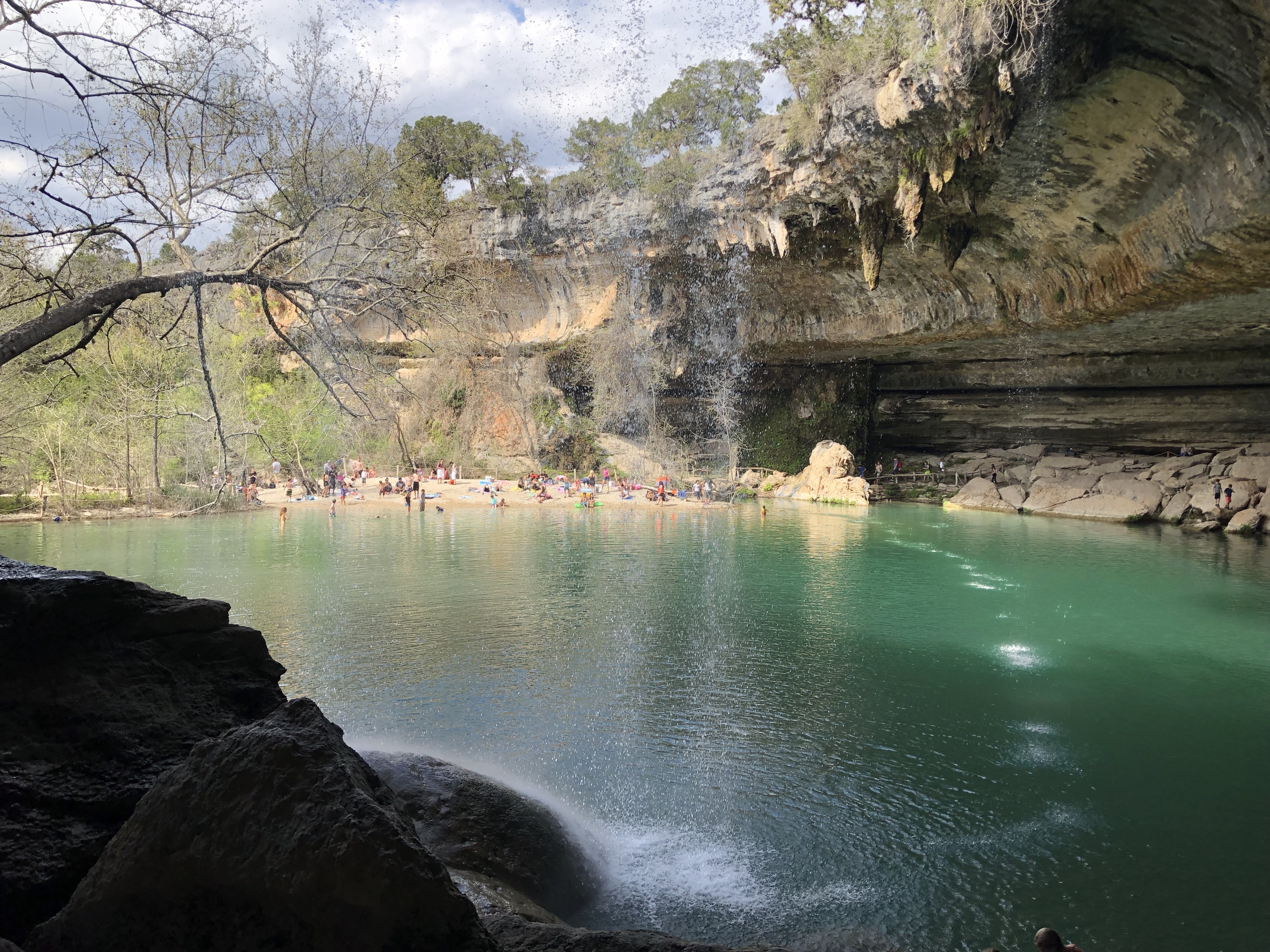 This Spring Break, my sister and I took a trip to Hamilton Pool. Hamilton Pool is just outside of Austin, about 45-50 minutes from downtown. Hamilton Pool is a natural pool in a grotto surrounded by beautiful scenery and close to a view of the Pedernales River. The pool is accessible by reservation only from March to October, which also might be the best time go, since the warmer weather might permit a swim. There is a morning slot from 9 am to 1 pm and an afternoon slot from 2 pm to 6 pm available, and entry is not allowed past 12:30 pm and 5:30 pm, respectively. We chose to take the afternoon slot, since it was March and the mornings were still a little chilly. The reservation fee is $11 online and an additional $15 cash is charged upon arrival per vehicle.