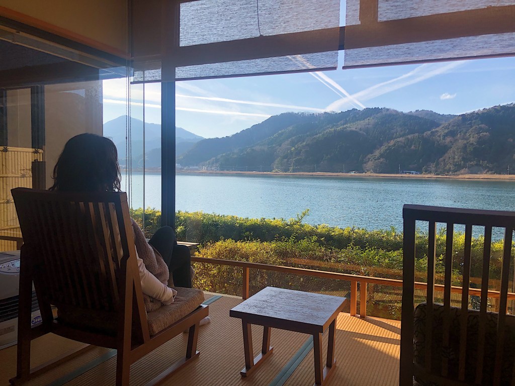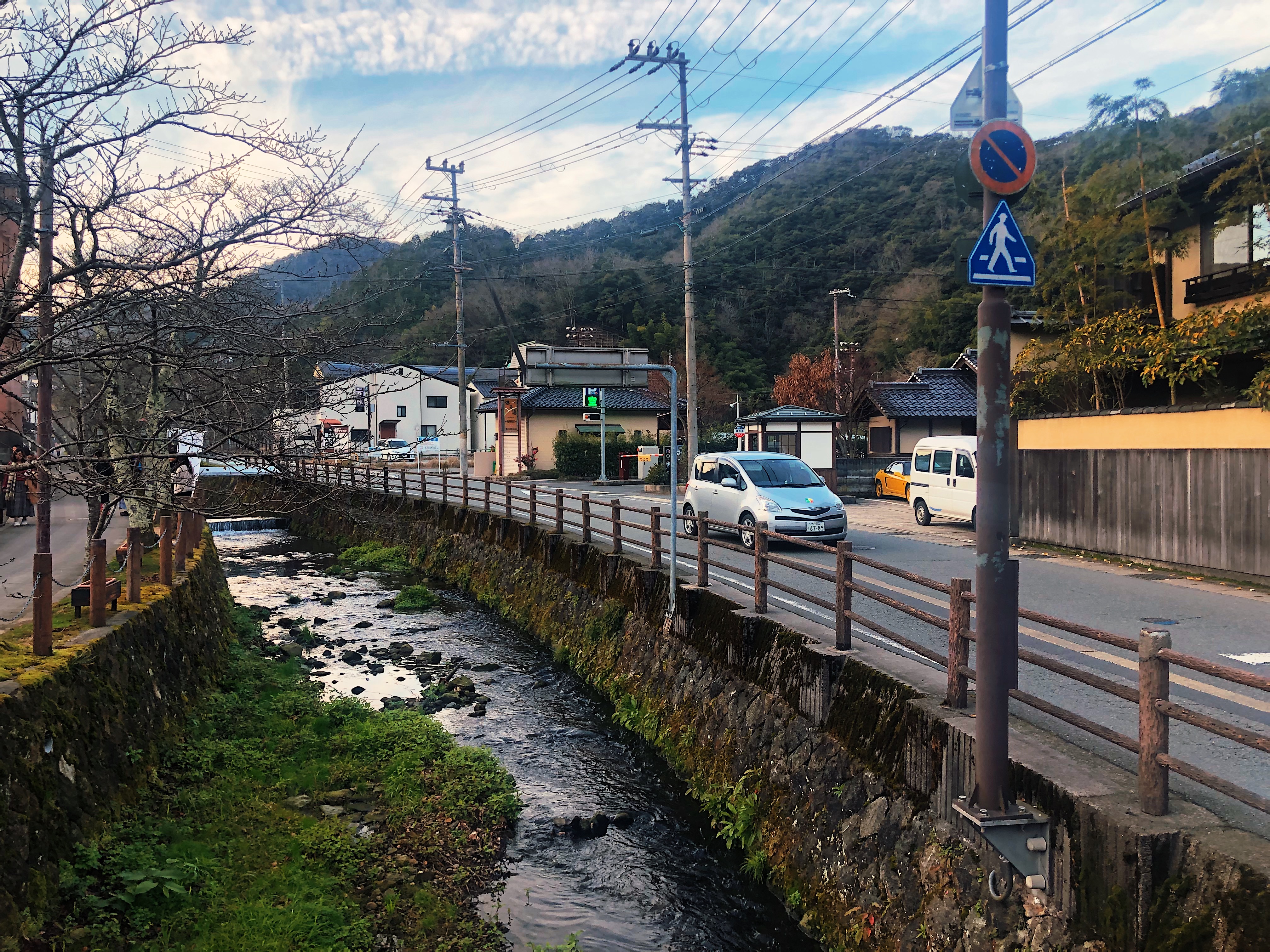 We stayed in a ryokan called Maruyama Onsen Ginka, which, as the name implies, is right on the banks of the Maruyama river. Our room was a traditional japanese room with views to the river; the bathroom also had a wooden bathtub with a large window with a river view. The ryokan was quiet and peaceful. Although it was on the outskirts of the town, it did offer transportation to the town so we could visit the onsen without having to worry about how to arrive.